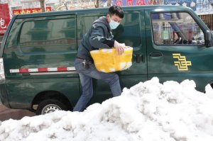江苏:金湖邮政迎风冒雪保障防疫用品寄递
