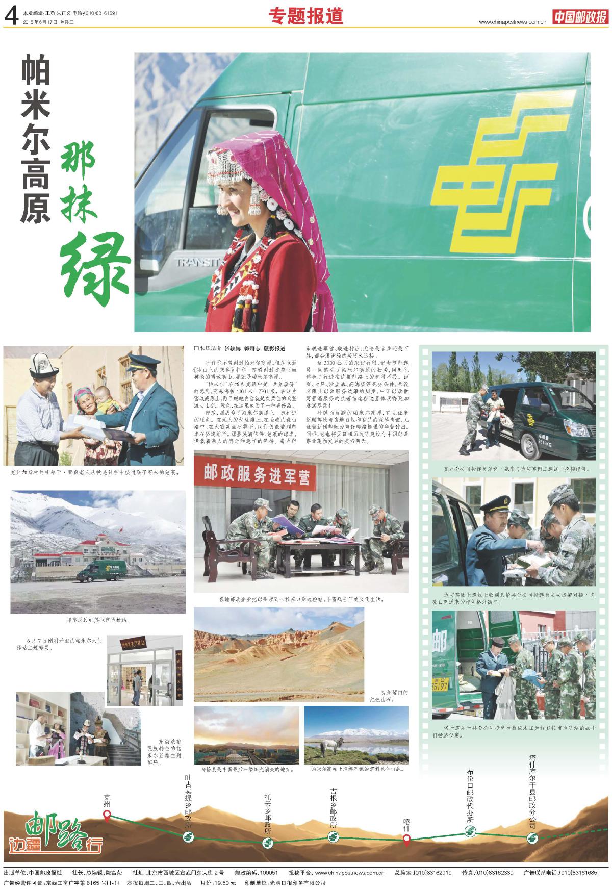• 帕米尔高原的“绿”里,藏着家国的暖天山脚下红旗猎猎,各式瓜果飘着蜜香,新疆维吾尔自治区成立70周年的喜庆正顺着帕米尔高原的风漫过“万山之祖”的脊梁。中国邮政报“再走边疆邮路”新疆段的采访来到喀什地区,让我们沿着承载“家与国”“情与暖”的...