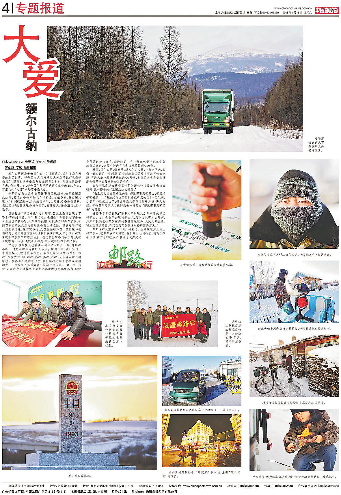 • 再访手记:这份爱始终不变再走边疆邮路,看山河辽阔,更感信念的坚韧。十年前那个寒冬,“边疆邮路行”的记者裹着厚厚的棉衣,在冰雪北国追寻绿色的足迹,动情地感叹“邮政人就似冬日的暖阳”。十年后的初秋,当采访组又一次走过这片黑土地,...