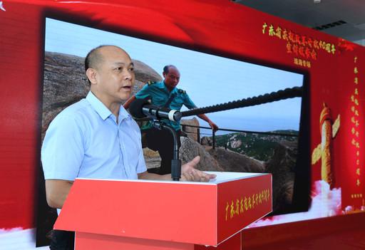 谢坚在广东省庆祝改革开放40周年宣讲报告会珠海专场上发言,他身后的大屏幕播放的是他30年来坚守海岛的感人瞬间