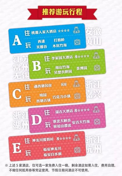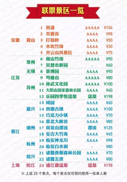 1、超值性价比:景点总价值2000余元,包含23个长三角景区以及5家酒店任选一,并推出了5条出行线路建议套餐,套餐可实现2-4个景点与1个住宿酒店的出行组合,游玩任一套餐即值回票价。