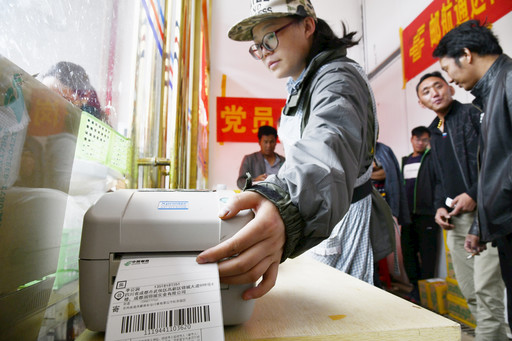 邮政工作人员使用PDA扫录松茸邮件信息。