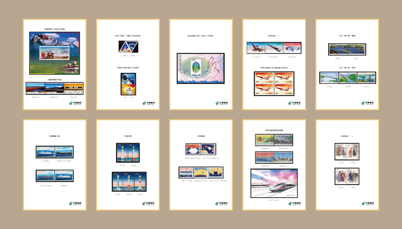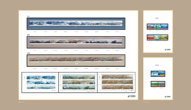 第十展柜的主题是“美丽中国”。选取《长江》《黄河》《长城》三套邮票和《美丽中国》(一)(二)组邮票。