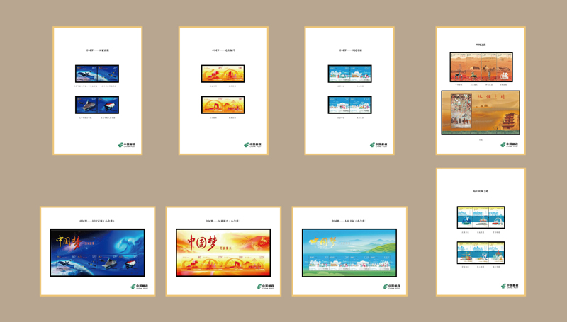 第七展柜展示的是“中国梦”系列邮票。中国邮政于2013年开始启动“中国梦”邮票系列,分三组展示国家富强、民族振兴和人民幸福。
