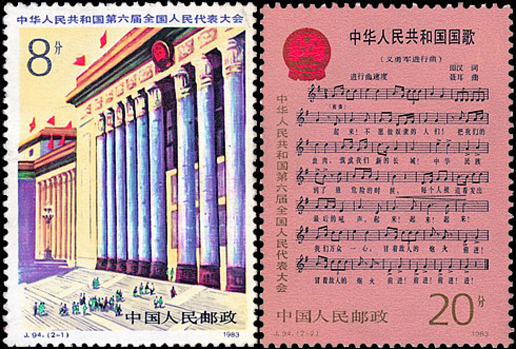 第六届全国人民代表大会于1983年6月6日至6月21日在北京召开。这是按照新宪法选举产生的首届全国人民代表大会。这次会议的主要任务是审议政府工作报告,审查和批准国民经济和社会发展计划、国家决算,选举和决定新的一届国家领导人员,组成新的一届国家领导机构,并审批一些相关政策。大会号召全国人民同心同德,发奋图强,继续朝着把中国建设成为现代化的,高度文明、高度民主的社会主义国家的宏伟目标前进。该套邮票由万维生设计,于1983年6月6日发行。