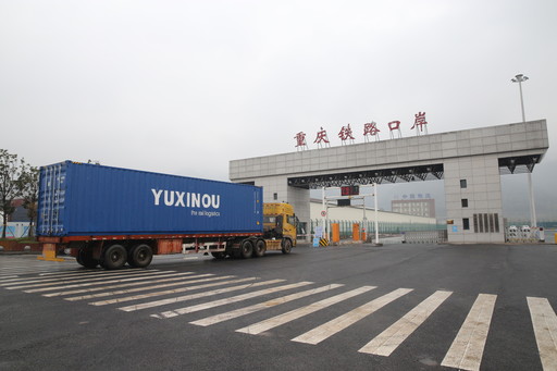运邮集装箱进入中国邮政重庆国际邮件互换局铁路口岸中心。