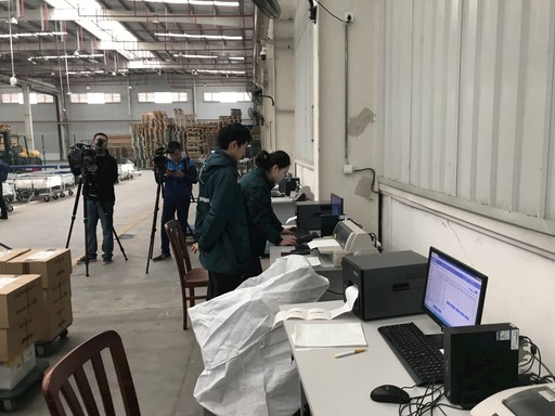 在海关工作人员及众多媒体的见证下,运邮集装箱开箱。