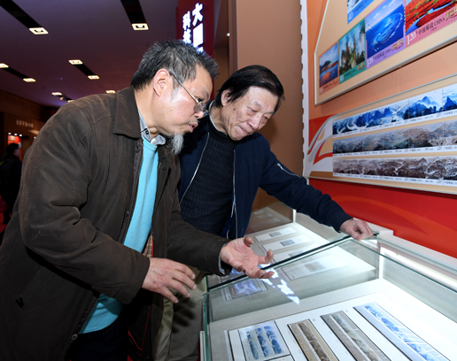 一说到邮票,两位老者的话匣子就打开了。“邮票作为‘国家名片’,意义非常重大,但设计难度也大,一般来说,艺术家喜欢挥洒,喜欢在创作中发挥自己的想象力,但恰恰邮票设计具有严谨的科学性。”许仁龙介绍,在《长城》邮票中,地理方位一点都不能马虎,长城的敌楼上有几个射箭孔都要有出处、有讲究;此外,邮票设计还要进行严谨的历史考证,长城绵延一万多公里,经过那么多省、市,沿途取景就需要仔细推敲,听取专家意见,最终还要画成一个艺术作品。“在设计邮票时要充分体现艺术巧妙的融合性,要突破时空,令人有身临其境之感,这又是一个难点。”时隔两年,许仁龙回忆起邮票创作过程还是感受颇多,“长城是改革开放的一种精神象征,中国邮政将它绘制成邮票长卷是一种突破。现在,这套邮票长卷在‘伟大的变革’展览中展出,我深感荣耀和自豪,在此也要感谢改革开放给我们艺术创作带来的新气象。”