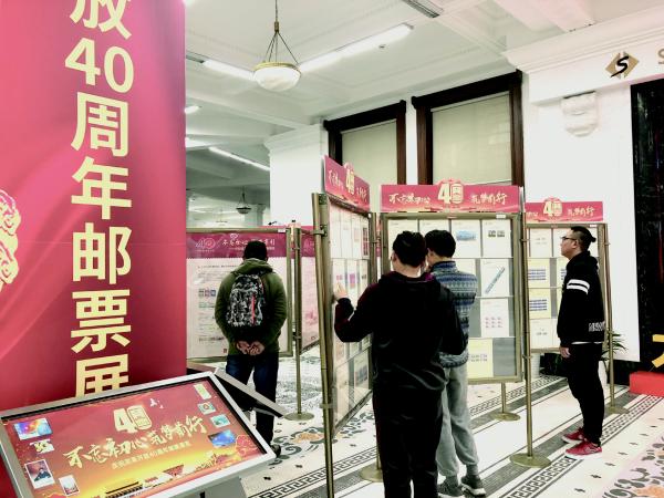 2018年12月18日至2019年1月31日,值此中国改革开放四十周年之际,由上海市集邮总公司、上海邮币卡交易中心股份有限公司联合承办的“不忘初心、筑梦前行——庆祝改革开放四十周年邮票展”在上海邮政大楼“远东第一大厅”开展。