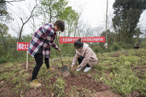3月19日,重庆市大足区邮政分公司党员与大足区检察院等单位员工来到石马镇参加植树活动。传递树苗、挥锹铲土、培实新土,大家分工协作,现场一片繁忙,最终,近100株柚子树在石马镇安家落户。□唐晓勇 张玲燕 摄影报道