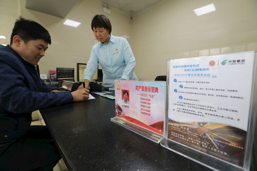 红色文化激励着一代又一代平山邮政人艰苦创业、拼搏奋斗,为广大用户提供着不断创新的邮政服务。图为柏坡东路邮政支局党员盖凌霄在服务用户。
