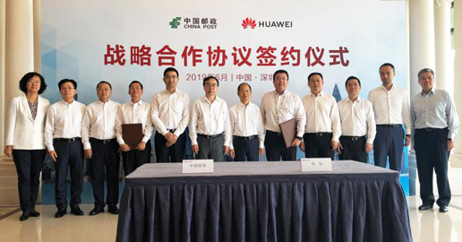 6月5日,中国邮政集团公司与华为公司签署战略合作协议。中国邮政集团公司董事长刘爱力、总经理张金良与华为公司轮值董事长徐直军出席仪式,中国邮政集团公司副总经理温少祺与华为公司副总裁兼中国区总裁鲁勇代表双方签署了协议。