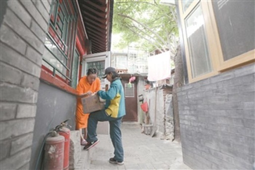 胡同里在修路,碰见快递小哥的三轮车经过,小梅都要停下自己的电动车,让他们先过。“他们换人太快,好多都不认识了。我觉得我们要比他们快乐些,时间久了,大家比较熟,用户对我们的尊重和信任便也多了些。跟人打交道,热情点大家都舒服。”