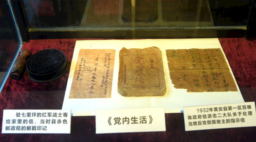 红安县赤色邮政局里,展示着象征红四方面军、红二十五军、红二十八军“三军合一”的红旗以及《小平您好》《中国梦》《中国工农红军长征胜利八十周年》等红色邮品;悬挂着《董必武同志诞生一百周年》《徐向前同志诞生九十周年》《中国人民解放军大将王树声》等纪念邮票;陈列着党在土地革命时期的指示信、红军家书和赤色邮政工作服、邮包、邮戳、草鞋、蓑衣、斗笠等用品用具,已有数千人到此接受爱国主义教育。