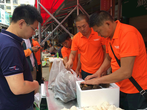 7月4日,云南省邮政分公司在昆明、丽江、迪庆、大理、楚雄五地联动举行松茸供应链解决方案推介会,以进一步拓展野生菌寄递市场。在昆明木水花野生菌交易市场,昆明邮政设立了野生菌收寄点,为客户提供一条龙的寄递服务。商户杨杰说:“现在EMS速度很快,基本上当天上午寄的第二天中午客户就收到了。”图为昆明EMS揽投员正在为客户封装野生菌邮件。 □云南记者 杨晓颖 摄影报道