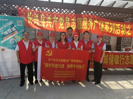 7月5日,邮储银行浙江省长兴县支行党支部联合长兴县金融办公室、太湖街道五里桥村村委会共同开展了以“银村党建共建、助推乡村振兴”为主题的共产党员志愿服务广场宣传活动。活动共发放宣传折页500份,参与群众有300余人,办理邮储银行各项业务50笔。□应思远 摄影报道