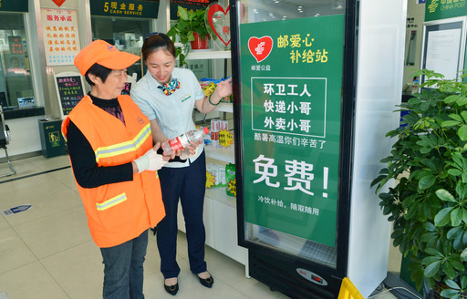奔牛支局内设有“邮爱心补给站”,免费为户外工作者提供饮用水等解暑用品,用心擦亮邮政品牌。