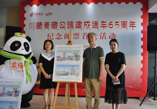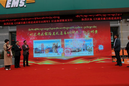 上午9点,四川省邮政分公司携手成都市邮政分公司,于熊猫邮局少城路旗舰店正式举行《川藏青藏公路建成通车六十五周年》纪念邮票首发仪式,以此缅怀10多万名军民在极其艰苦的条件下奋勇拼搏,在“世界屋脊”创造了公路建设史上的奇迹,结束了西藏没有公路的历史。在“两路”建设和养护公路的过程中,形成和发扬了“一不怕苦、二不怕死,顽强拼搏、甘当路石,军民一家、民族团结”的“两路”精神。四川省集邮协会的集邮爱好者和各大新闻媒体共50余人参加了首发仪式。川报观察、封面新闻、四川旅游网、成都日报社、成都电视台等媒体对首发仪式进行了报道,进一步向全社会宣传“两路”精神。