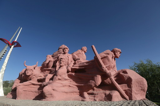 青海省格尔木市将军楼公园里的筑路大军雕塑。□蔡谟祥 摄