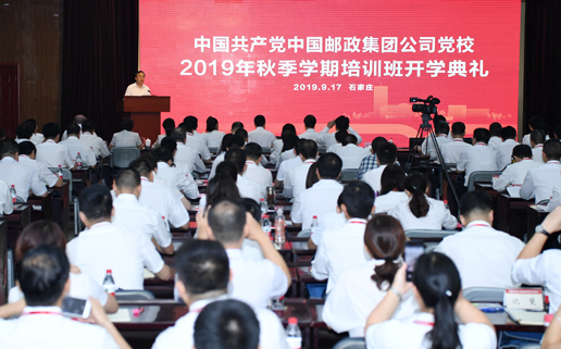 9月17日,中共中国邮政集团公司党校2019年秋季学期培训班举行开学典礼。集团公司党组书记、董事长、邮政党校校长刘爱力作动员讲话并讲授专题党课。