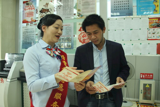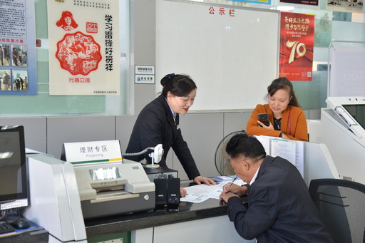 顾朝竹悉心为客户办理财产品购买登记手续。