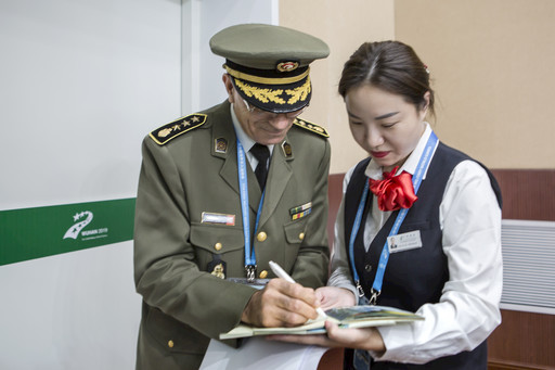 10月18日上午,军运村邮局还举办了“把武汉的爱寄回家”明信片赠送仪式,向各代表团官员、运动员免费赠送5000张带有国际邮资的军运会场馆主题明信片。