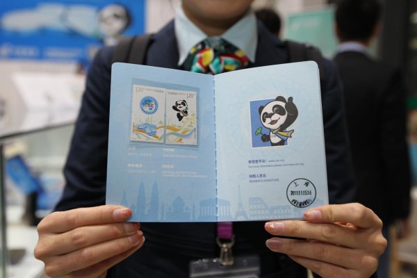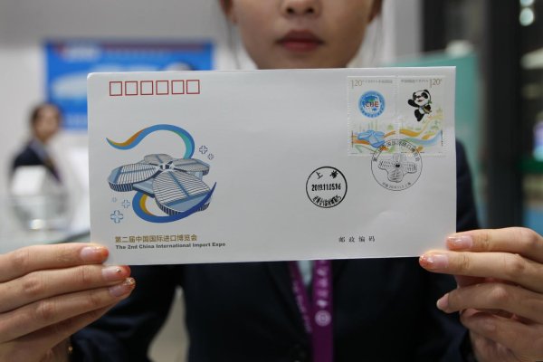 2.市民游客纷纷到临时邮局购买进博会相关邮品。