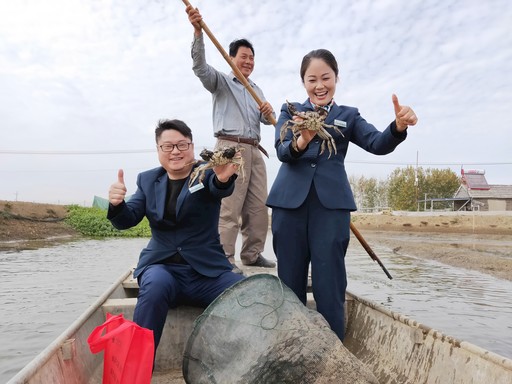 “王哥呢?”“他在场上晒稻子。”“走,去你家蟹塘看看。”还在晒粮食的王成广接到唐传美的电话,特意赶到螃蟹塘。他划起船,撑起篙,载着陈仕珍和赵旭阳体验他家水肥蟹美的收获季。“陈局长,我给你们拉一笼上来看看。”“哎呀,大螃蟹。来来来,帮我拍个视频,我要把老哥的螃蟹晒到抖音上去。”丰收季,邮政人比粮农蟹户们更开心。