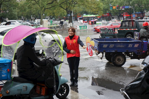 12月19日早高峰时段,浙江省乐清市邮政分公司的党员志愿者走上街头,开展“文明垂范 志愿先行”活动。“您好,请遵守交通规则,非机动车请退至安全线内等候红灯。”党员志愿者身穿红马甲,手持“文明出行你最棒”劝导牌,耐心引导过往行人和非机动车辆遵守交通规则,劝导不文明交通行为。