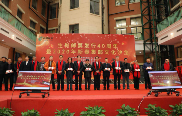 为庆祝生肖邮票发行40周年,1月5日上午,《庚子年》邮票首发暨2020年新春集邮文化沙龙在上海邮政大楼中厅顺利举行。