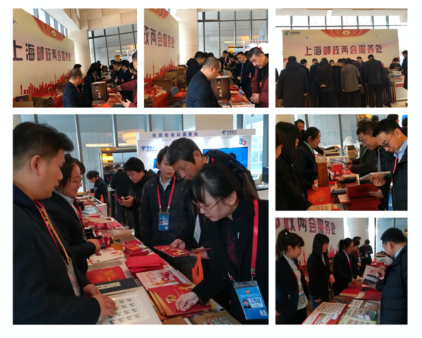 此次会议现场服务,上海邮政结合多年市“两会”等大型会议的服务经验,为代表们提供收寄邮件、加盖纪念章戳、销售邮品、产品预约、礼包推荐组合、送货上门等贴心服务,同时准备了多种集邮“套餐”产品,得到了代表们的喜爱和热捧。现场服务人员运用专业的服务态度和发自内心的真诚热情,掀起了“两会”的购“邮”热,使邮政服务点成为场馆内一道亮丽的绿色风景线。
