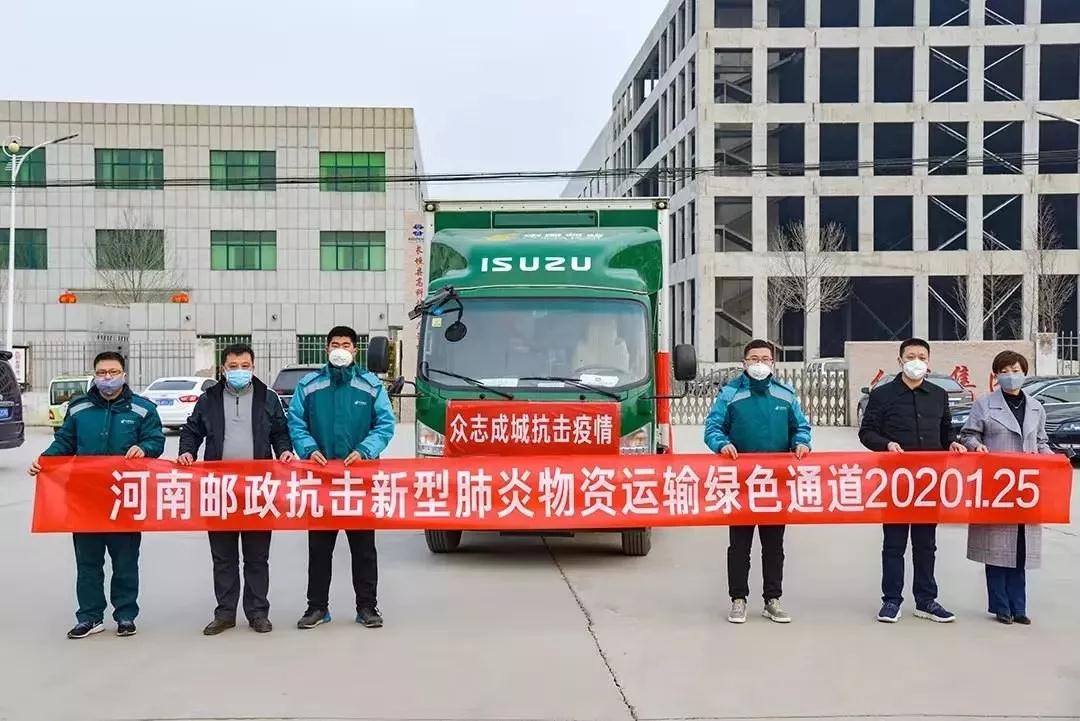 除夕前夕,河南省爱心企业采购了138箱医用防护类应急物资捐助给武汉大学中南医院。正值大年初一,面对运输资源相对短缺的难题,河南省长垣市邮政分公司立即响应,提供免费的运输寄递服务,并紧急动员,组织人员和车辆,协调中间各环节,开通特快专线,将该批应急物资从生产厂家装车,直发武汉。当天下午4:00,满载着爱心捐助应急物资的绿色邮车立即奔赴武汉,于26日上午到达武汉市,及时为医务工作者送上“防护弹药”。