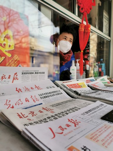 9:30,一位老大姐过来买《北京日报》和《参考消息》,还有人来打听晚报和疫情情况;9:40,一个快递小哥儿习惯地把车停在报刊亭旁边,扫码4块钱买了《北京日报》《参考消息》《环球时报》,直说好几天没看报了。从除夕到初七,这个报刊亭销售报刊1599元,《人民日报》《北京日报》《参考消息》《北京晚报》累计销售近500份。