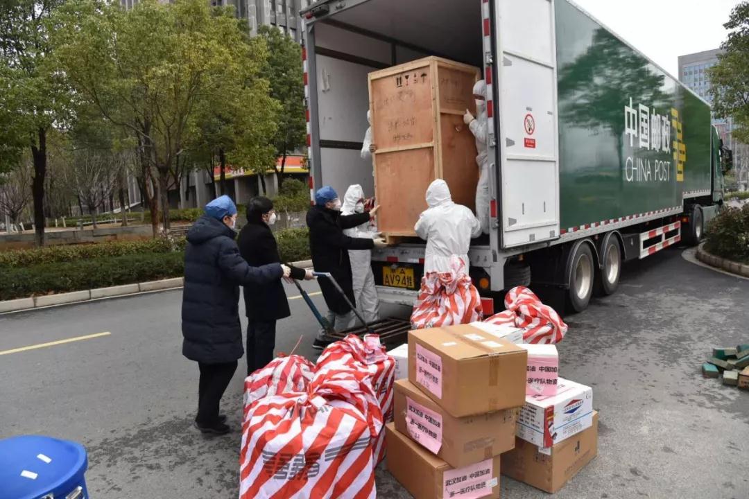 2月7日上午9点,浙江邮车准点到达武汉邮区中心局,为确保这一重要物资及时到达,武汉邮区中心局没有按正常流程先在中心局接卸后再转运至收件地址,而是直接派出邮车指引浙江邮车,将这一重要物资直接送至武汉大学人民医院(东院)。