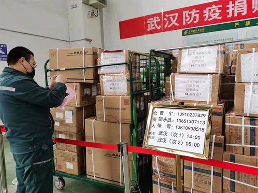 为了让防疫物资快速送达武汉,北京邮件综合处理中心对防疫物资采取专人接收、专人处理、专人发运,优先收寄、优先接收、优先处理、优先运输、优先投递,并开通绿色通道,捐赠物资实行全程单独处理,内部处理环节提速两个多小时。此外,每天开通两班北京至武汉的陆运干线车辆,确保捐赠物资第一时间运往防疫最前线。截至2月5日,累计组开邮车24趟次,共发运邮件及物资27540袋/件,161016公斤。