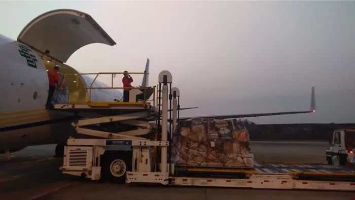 13时,航班计划获得民航局批准,“广州—宜昌”专机运输防疫医疗物资的空中快速通道开启。与此同时,邮航广州办事处已按任务通知,先行展开物资交接工作;为完成此次任务,邮航紧急调用一架737-800飞机于15时05分从北京首都机场起飞,于18时08分飞抵广州白云机场。18时27分,物资完成在邮航广州办事处的集装作业后开始进行装机作业,所运物资为防护服、雾化器、氧气雾化机及赴鄂支援医护人员行李等,物资净重13.5吨。