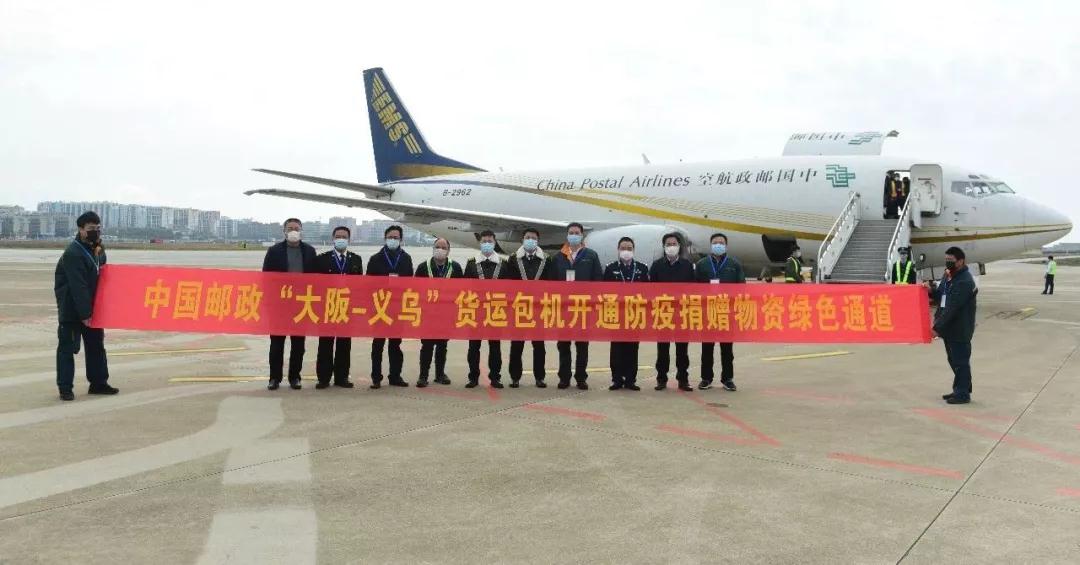 据悉,中国邮政“义乌—大阪”邮航货运包机于去年8月开通以来,每周五个班期(周二至周六),具有往返直飞、时限稳定、次日投递、专业报关等优势,充分发挥义乌在国家“一带一路”倡议中的重要地位和区位优势,进一步提升义乌跨境电商市场竞争力。此次邮航货运包机海外捐赠物资绿色通道成功开通,将海外企业、华侨等的爱心与温暖快速传递至国内,鼓舞着每一位中国人的心,也进一步促进义乌成为中日两国经贸发展和航空物流发展重要桥梁的同时,更是让义乌成为疫情期间防疫物资捐赠和运输的一个重要口岸;邮政将充分发挥快递物流网络优势,整合各项运能资源,全力支持疫情防控工作,确保各类物资运输到位,为祖国各地不断运送爱与希望,坚决打赢这场疫情防控阻击战。