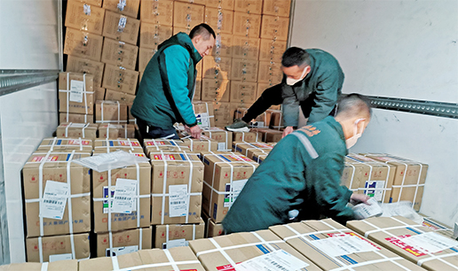 四川邮政员工赶发防疫物资。 □周旭 摄影报道