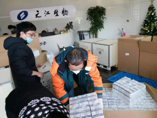 2月1日,浦东新区寄递事业部周浦营业部异常忙碌着,由营业部的5位小伙伴组成的一支突击队伍前往之江生物科技股份有限公司现场进行封装、核验、打单、帖单、装车……他们正在为防疫前线运送试剂盒而不停努力着。