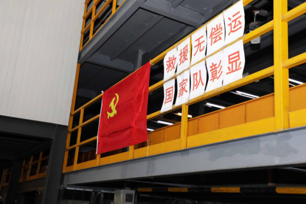 ▲一箱箱的救援物资源源不断从这里发往前线