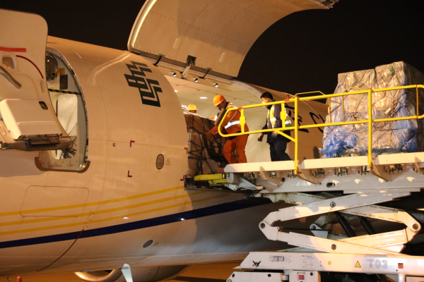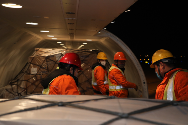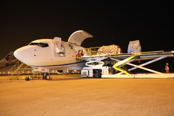 21时18分,邮航CF9117航班在武汉天河机场降落后,邮航武汉办事处人员和天河机场地面保障人员立即展开卸机作业,全部作业流程顺畅有序,仅历时20分钟。一场紧张忙碌的作业后,这批物资已迅速运往需求方处。