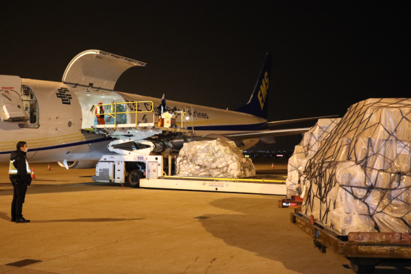 在2月7日晚间境外捐赠物资到达上海浦东国际机场后,邮航各相关部门立即完成指令响应和运输方案的制定工作,采用最优化的装机方案,分别于2月8日下午和2月9日分两架飞机装载运输防疫物资。2月8日下午,在得到民航局方面批复后,邮航运行控制系统、飞行系统、机务系统、地面保障系统工作和相关防护工作迅速展开,为专机运输防疫医疗物资空中快速通道的再次开启而精心准备。