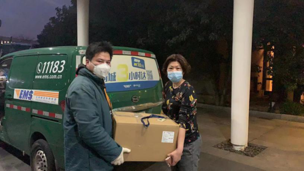 就在这时,“国家队”伸出了援手。经与市寄递事业部市场部联络后,市寄递市场部高度重视,第一时间把有关情况告知收寄人所在的浦东新区分公司,并向华山医院许下承诺,以后凡是有发往武汉的物资,我们都会第一时间到,将物资直发武汉!浦东新区分公司接到通知高度重视,在了解货物数量及具体地址后,一小时内世博营业部和金桥营业部均完成了这批物资的上门揽收。下午17点,浦东新区分公司世博营业部、金桥营业部分别派专人前往两处收寄点接收物资。从获知信息到收取物资,上海邮政争分夺秒,给援鄂物资一路开通“绿色通道”。