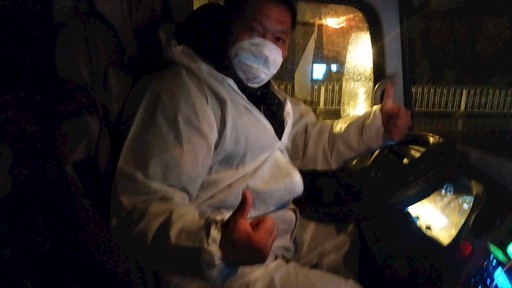 去雷神山医院送防护服,由于医院面积很大,又是第一次来,吴航一路问着找仓库。可能是防护服太厚重且必须遮住耳朵,可能是口罩戴了两层,也可能是因为恐慌出了太多汗模糊了护目镜……越是找不到仓库越是着急,最后就一头开进了医院的污染区。工作人员赶紧跑着追他,他也终于找到了去仓库的路。