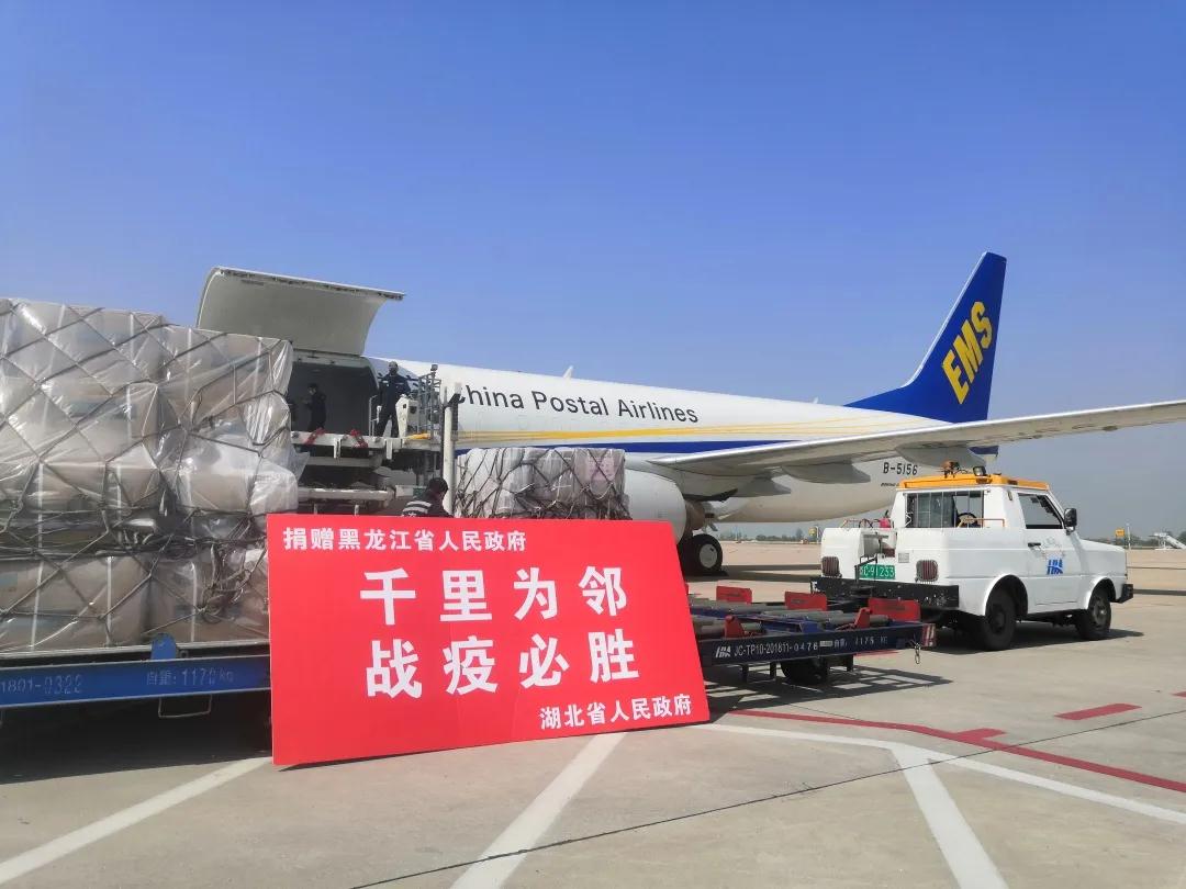 4月15日下午,湖北省捐赠黑龙江省的近3000万元医用防护物资和医疗救治设备,通过CF9111(波音737-800)、CF9116(波音757-200)、CF9128(波音737-300)三架邮航包机从武汉天河机场相继运抵哈尔滨、牡丹江机场。作为首家执行向绥芬河运输紧急医疗物资的航空公司,这也是中国邮政航空公司自1月26日执行防疫物资运输包机重大任务以来,首次在一天内同时启用三架飞机、三种机型进行运输作业。随后,这批物资将由黑龙江省邮政分公司点对点以最快速度送达绥芬河。