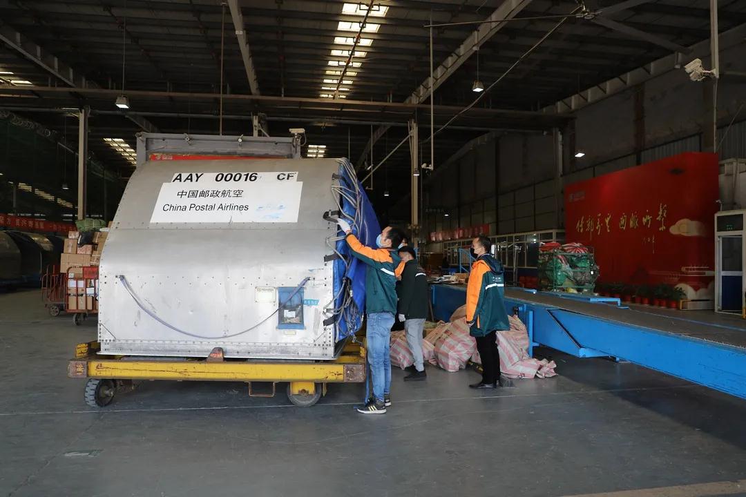 牡丹江邮政员工准备就绪,等待邮航包机到来。