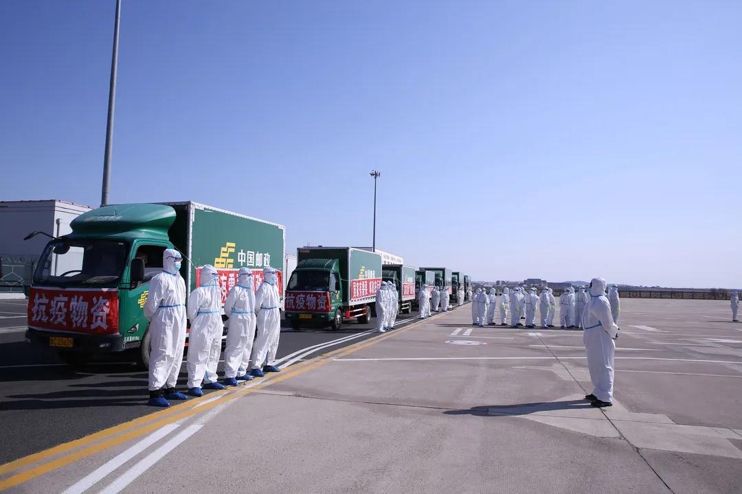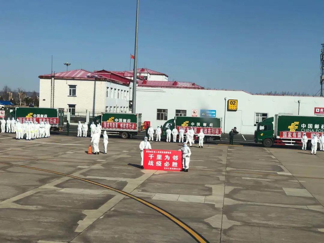 为及时将抗疫物资运送到绥芬河,黑龙江省邮政分公司召开紧急会议,相关负责人赶赴哈尔滨、牡丹江两大机场一线指挥,并迅速组织哈尔滨邮区中心局和牡丹江市邮政分公司展开航班物资接卸及陆路运输工作。哈尔滨邮区中心局接到通知后第一时间着手调配4台22吨的邮政货车,牡丹江邮区中心局紧急调配12吨、8吨、4吨等共10台邮政货车承担运输任务。