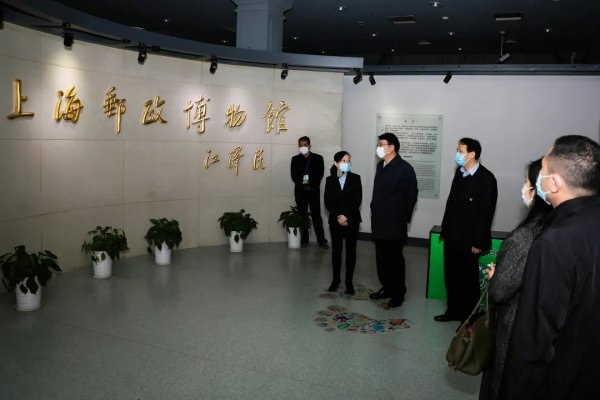 张晓敏一行首先参观了上海邮政博物馆,了解国内外邮政历史演变及我国近现代邮政事业发展情况。