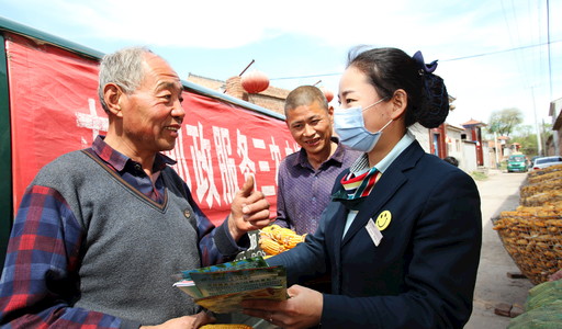 情系“三农”,邮政员工在田间了解农户春耕需求。