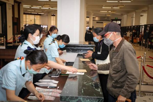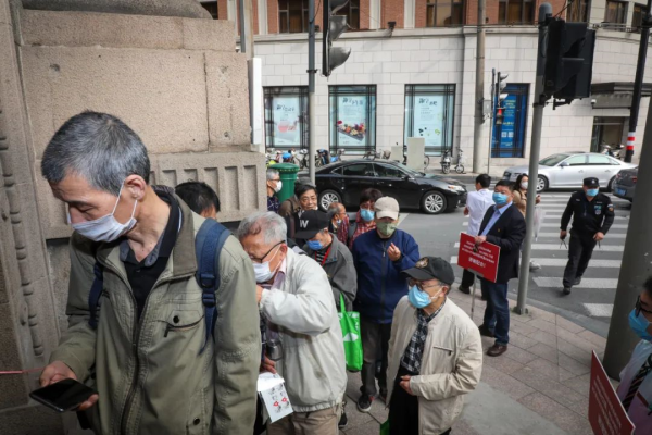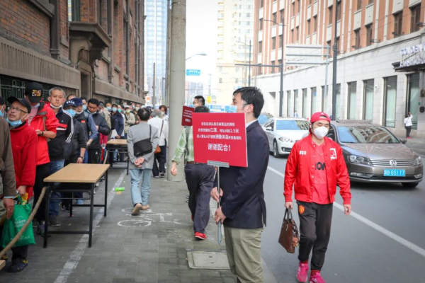 早晨7点20分许,位于四川北路上的上海邮政大楼门口,前来购买本次《众志成城 抗击疫情》邮票的邮迷们已经排起了长队,队伍沿着天潼路向西排去,队尾一度逼近了崇明支路。为此,上海市邮政分公司更特别组织了20多位党员志愿者,他们早早到岗,维持着现场的秩序。